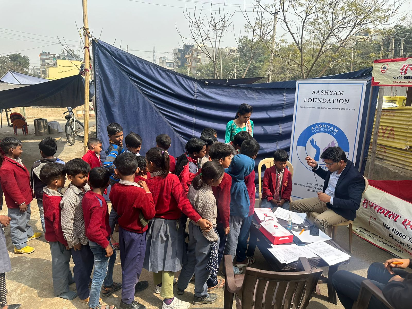 Aashyam Foundation is dedicated to providing free hearing aids, health camps, and educational support to underserved communities, especially children of defense personnel in remote areas.